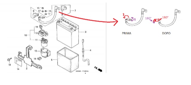 Nella foto sotto vedi un esempio di installazione sul Transalp 600 di una piccola Skyrich HJTZ10S con una capacità abbastanza limitata ma con uno spunto quasi doppio della 12Ah originale, sta funzionando egregiamente da oltre 4 anni. Per montarla si è reso necessario allungare il cavo del positivo o modificarlo e rifare la barretta di fissaggio (non badate a vaschette olio e staffe è una moto modificata non solo nella batteria). Modifica non più necessaria perché ultimamente sono reperibili (anche se con una certa difficoltà) batterie al litio di dimensioni compatibili con quella originale.