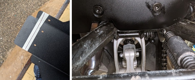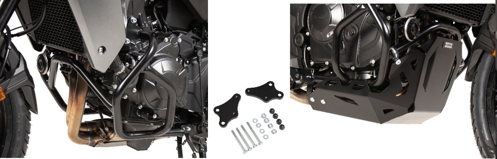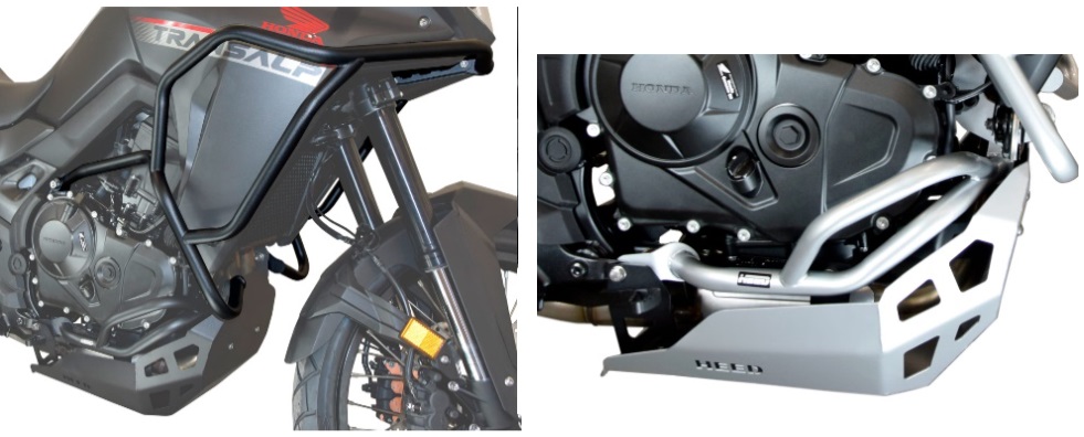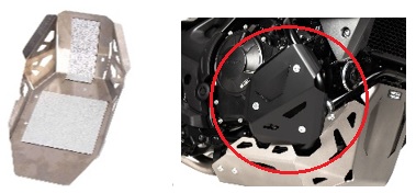 Paracoppa: alluminio 4mm, 3,8kg 340€. Progettato per essere montato solo con le barre paracarene. Non compatibile con cavalletto centrale OEM, a meno di un di un taglio.